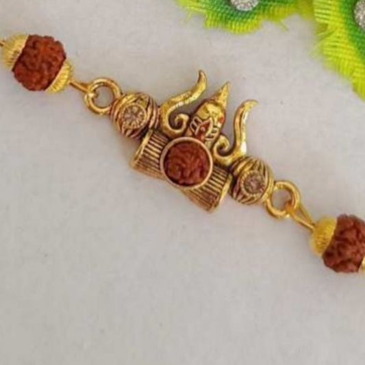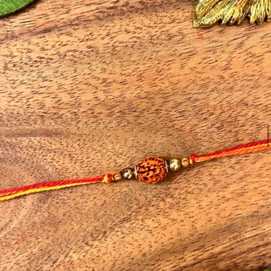 Single Rudhraksh With Gold Cap Rakhi - Single