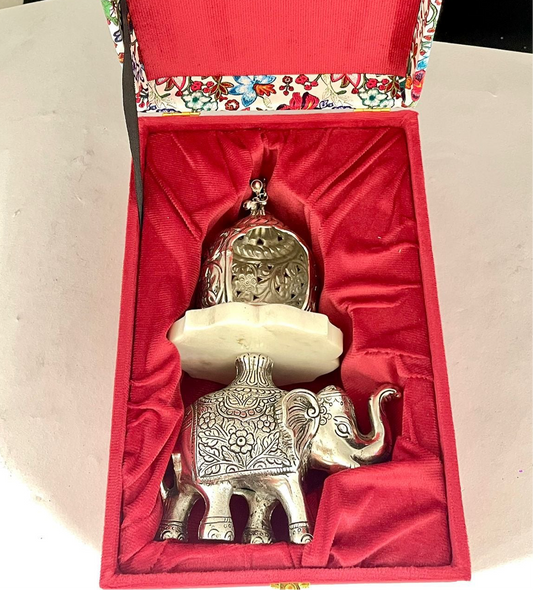 Silver Elephant Tealight Holder β Decorative Diya Stand with Gift Box