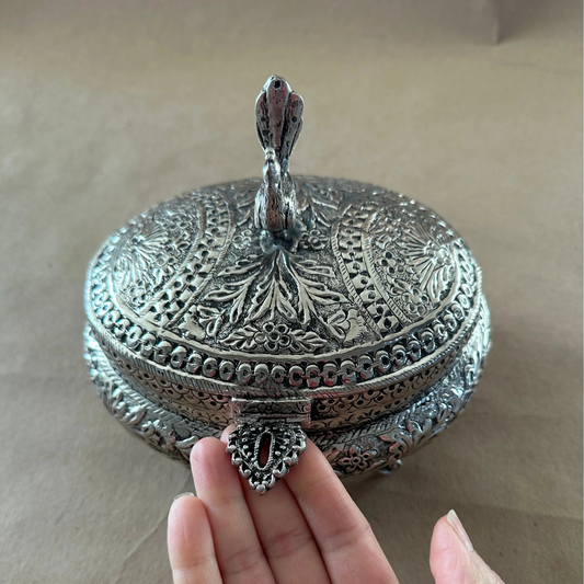 Silver Peacock Bowl β Handcrafted Pooja & Diwali Gift