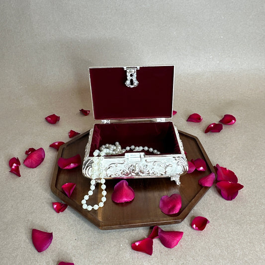 Vintage-Style Silver Jewelry Box with Rose Embossing