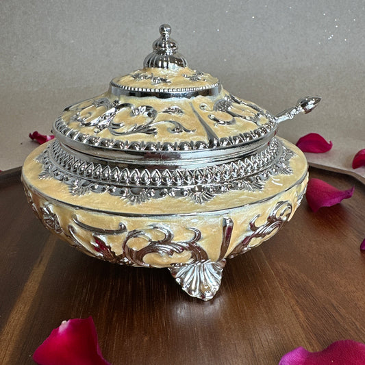 Cream Enamel Sugar Pot with Removable Glass Bowl β Elegant Gift in Satin-Lined Box