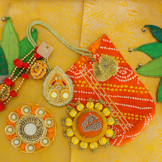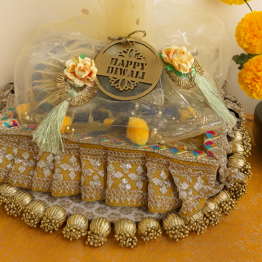 Diwali Gift Set – Rangoli Diyas, Pom Pom Latkan, Shubh Labh & Decor Tray
