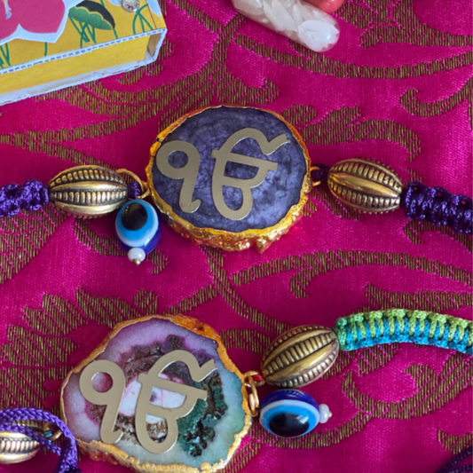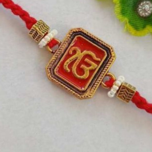 Embellished Rakhi with Pearl Beads – Pink Thread