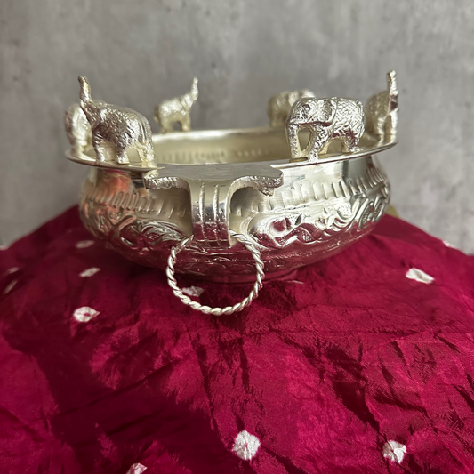 Exquisite 8-Inch Urli with Elephant Border - Handcrafted Décor