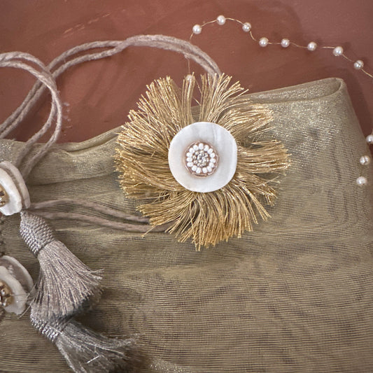 Golden Brocade Heavy Mirror & Pearl Bandanwar