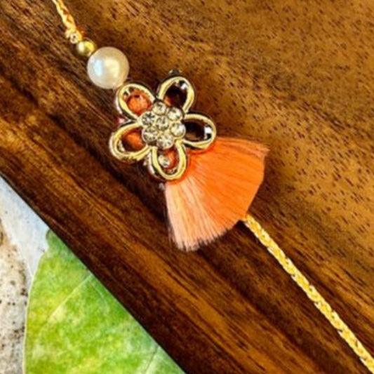 Golden Flower with Tassel Rakhi (Peach) - Single