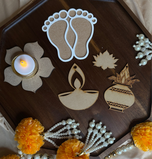 Fillable Rangoli Charan Wooden Base – DIY Festive Décor | Chamak Dhamak USA