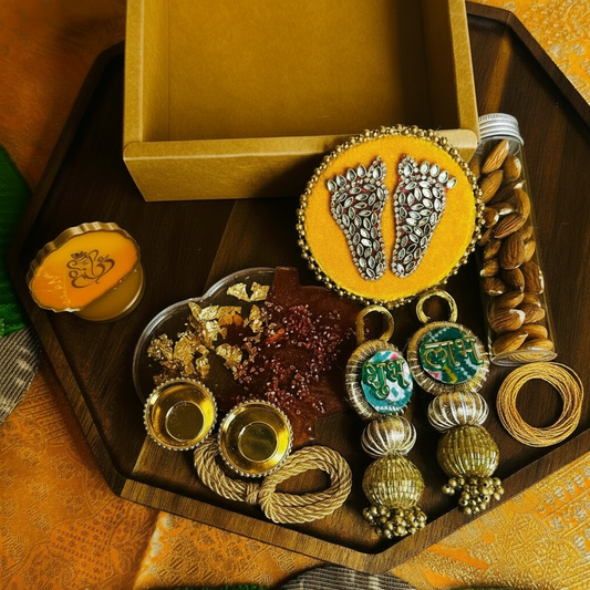 Premium Diwali Gift Box β Charan Paduka, Shubh Labh,& Almond Jar | Chamak Dhamak USA