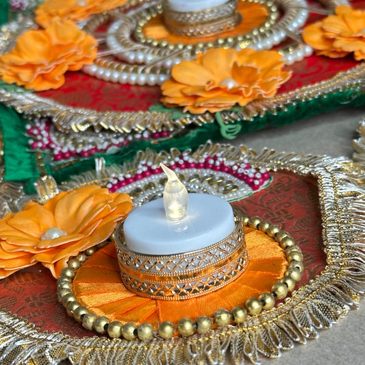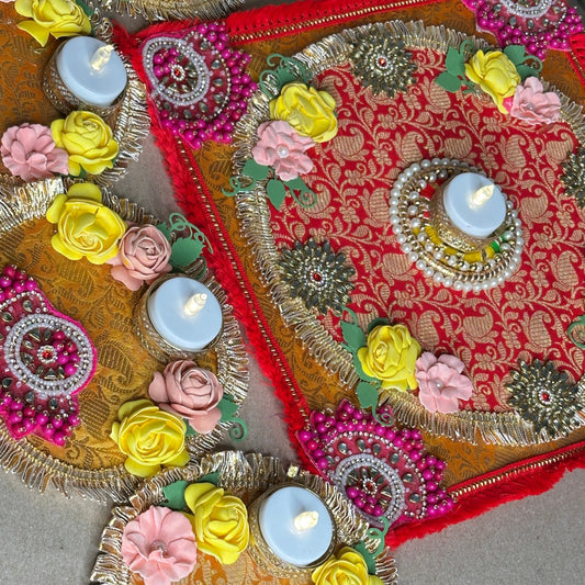 5-Piece Square Diya Rangoli Set in Brocade Fabric - Festive Decoration