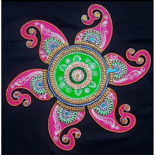 Gotta Patti Rangoli Set with Repositionable Lotus Diyas - 7-Piece Festive Decor