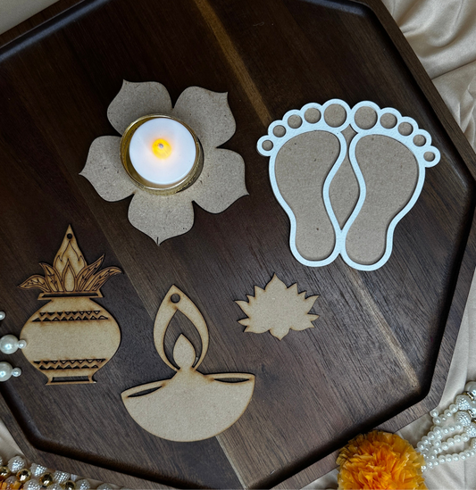 DIY Lotus Diya Base – Wooden Craft Kit with Golden Holder | Chamak Dhamak USA
